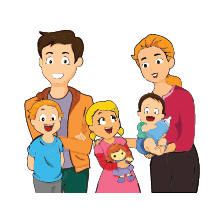Write the correct words (father - brother - family - mother) under the pictures.