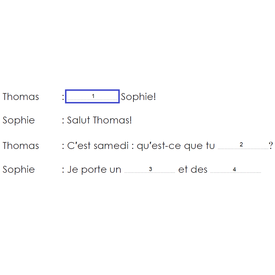 Choisis les bons mots pour compléter ce dialogue.